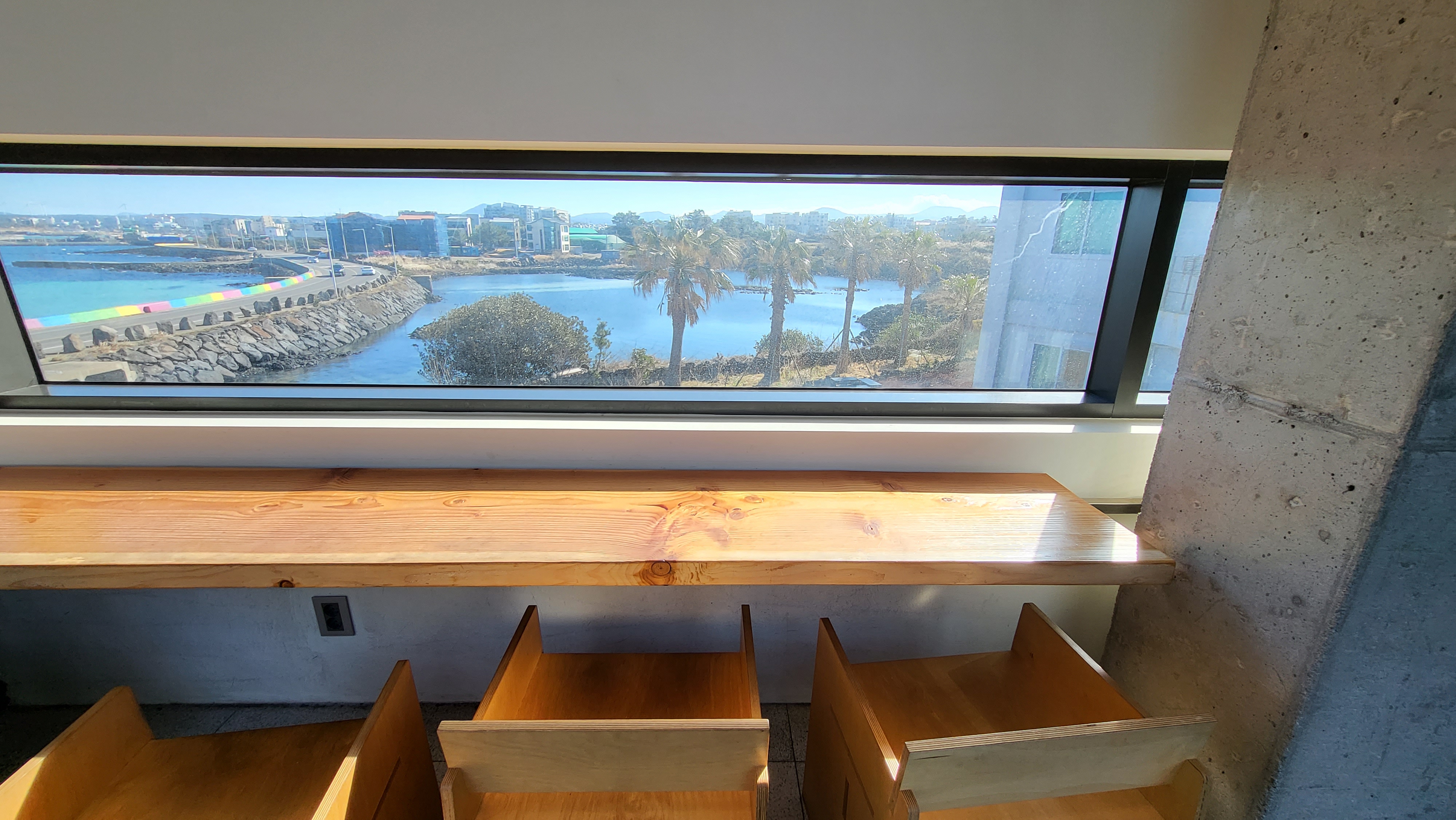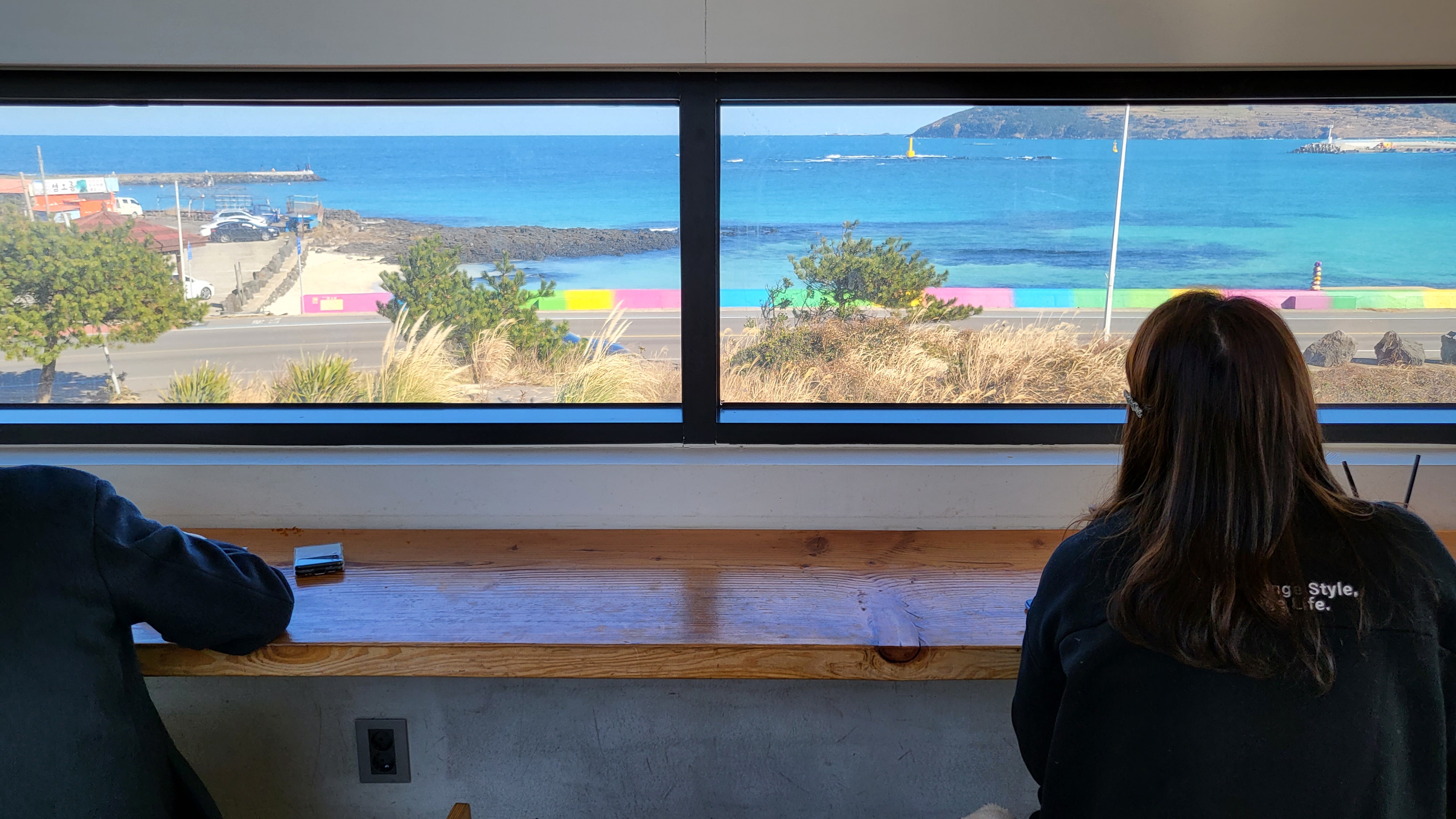 통유리창으로 해변을 보며 먹을 수 있는 자리가 마련돼있다.