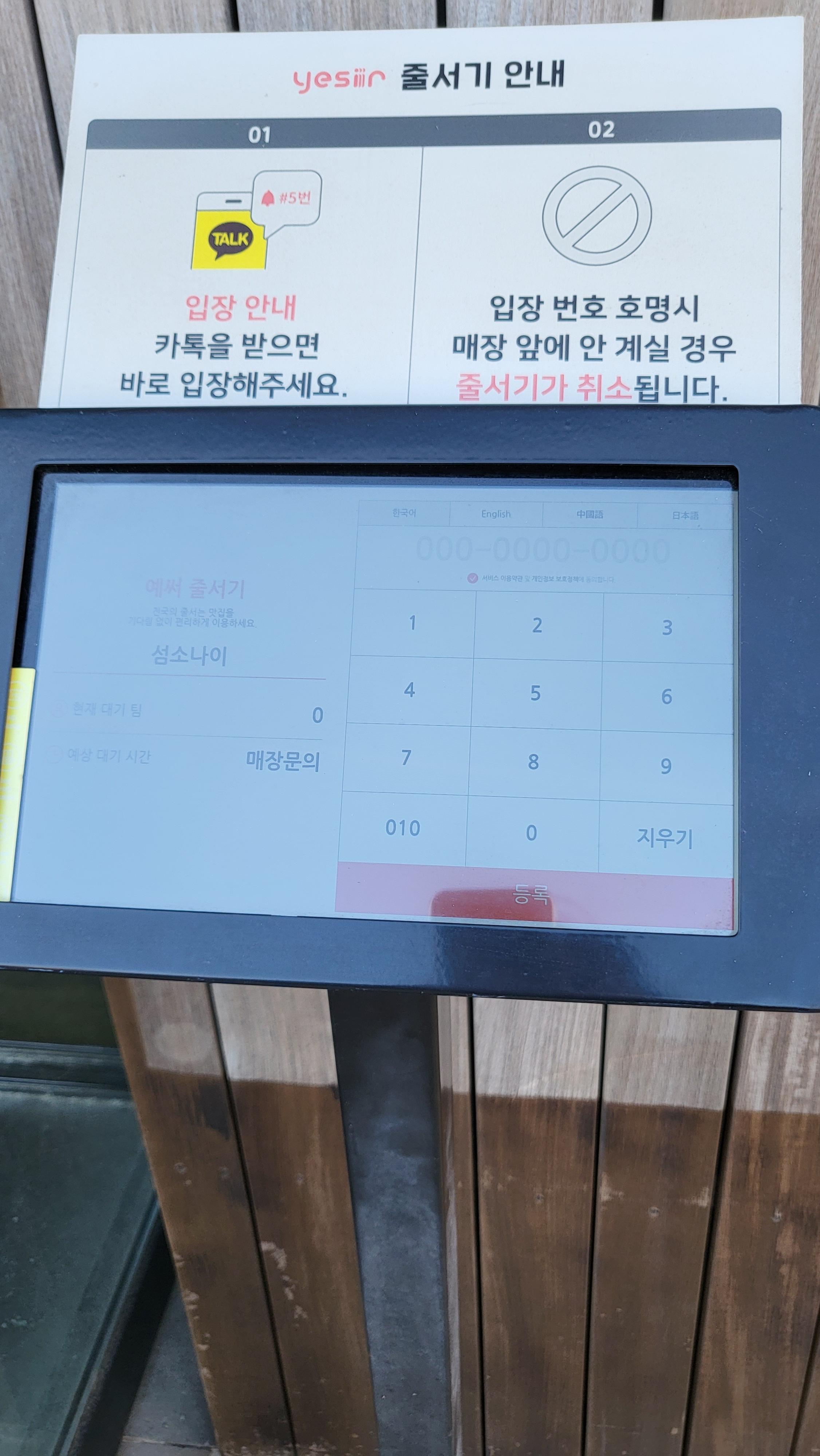대기는 예써앱으로 가게 앞에서 등록하면 된다.