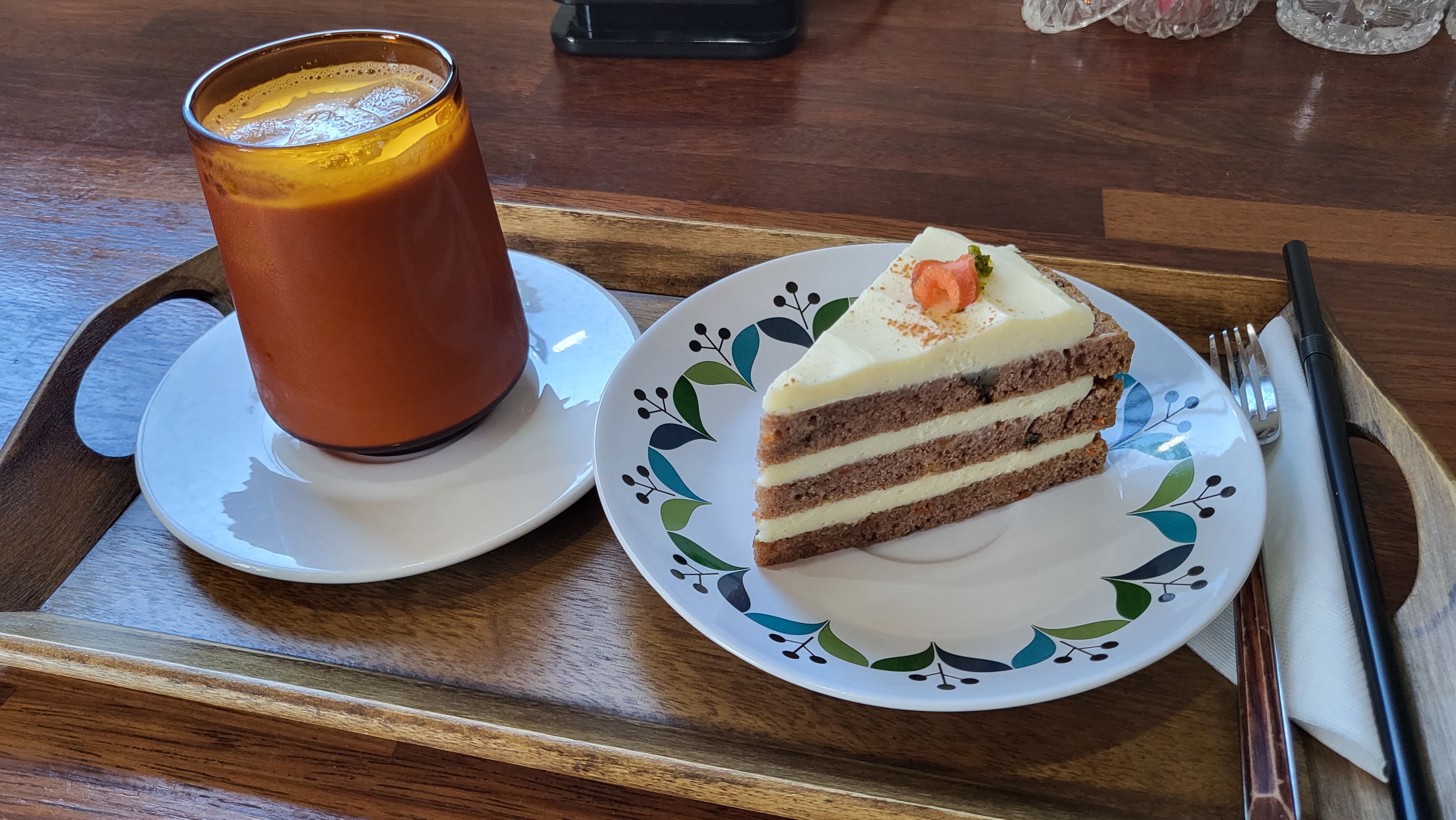 딸기라떼를 먹을까 했지만, 밀크티에 끌려 밀크티와 당근케이크를 주문했다.