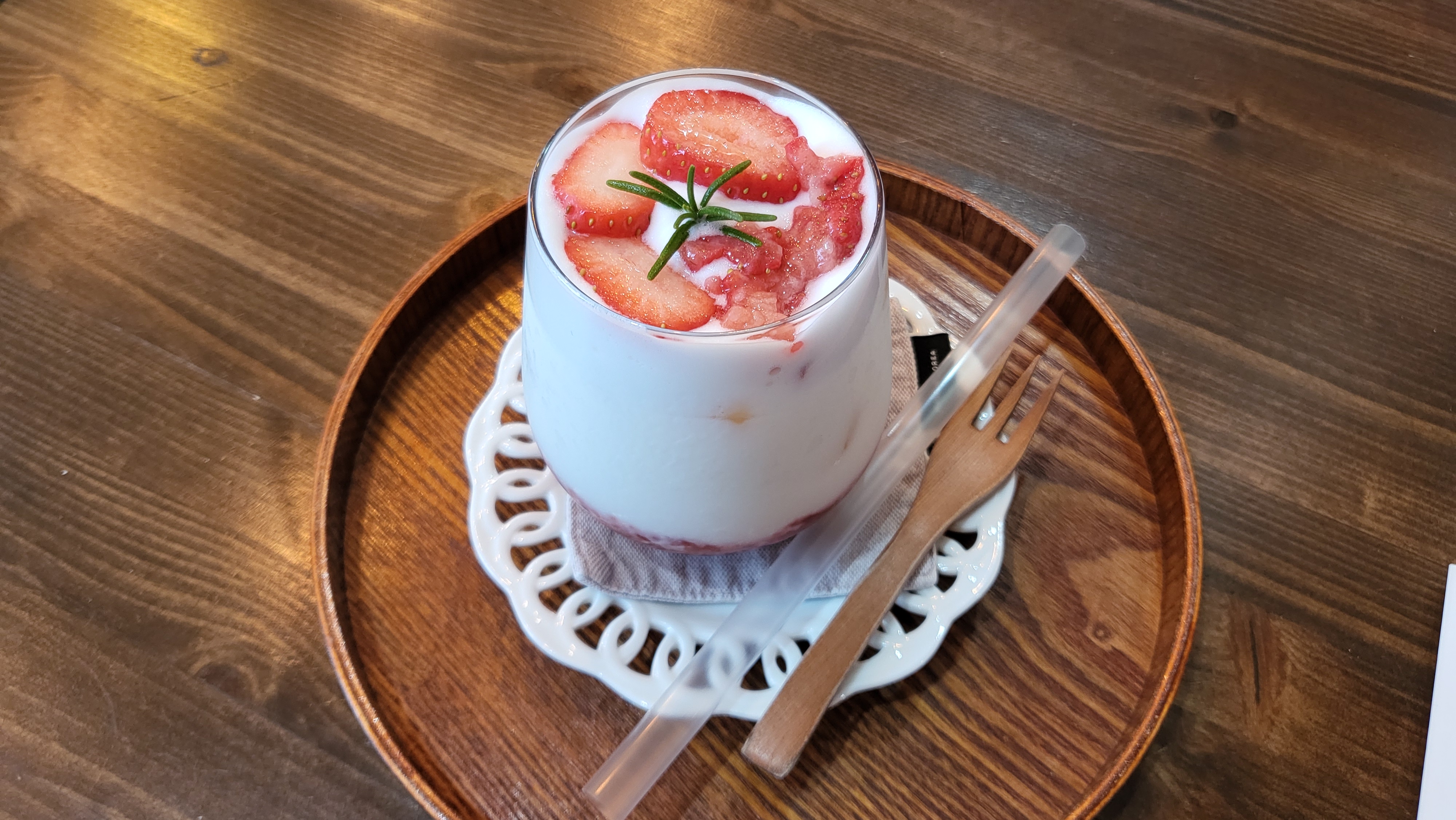 종달리746의 시그니처 메뉴는 당근케이크와 딸기라떼이다.