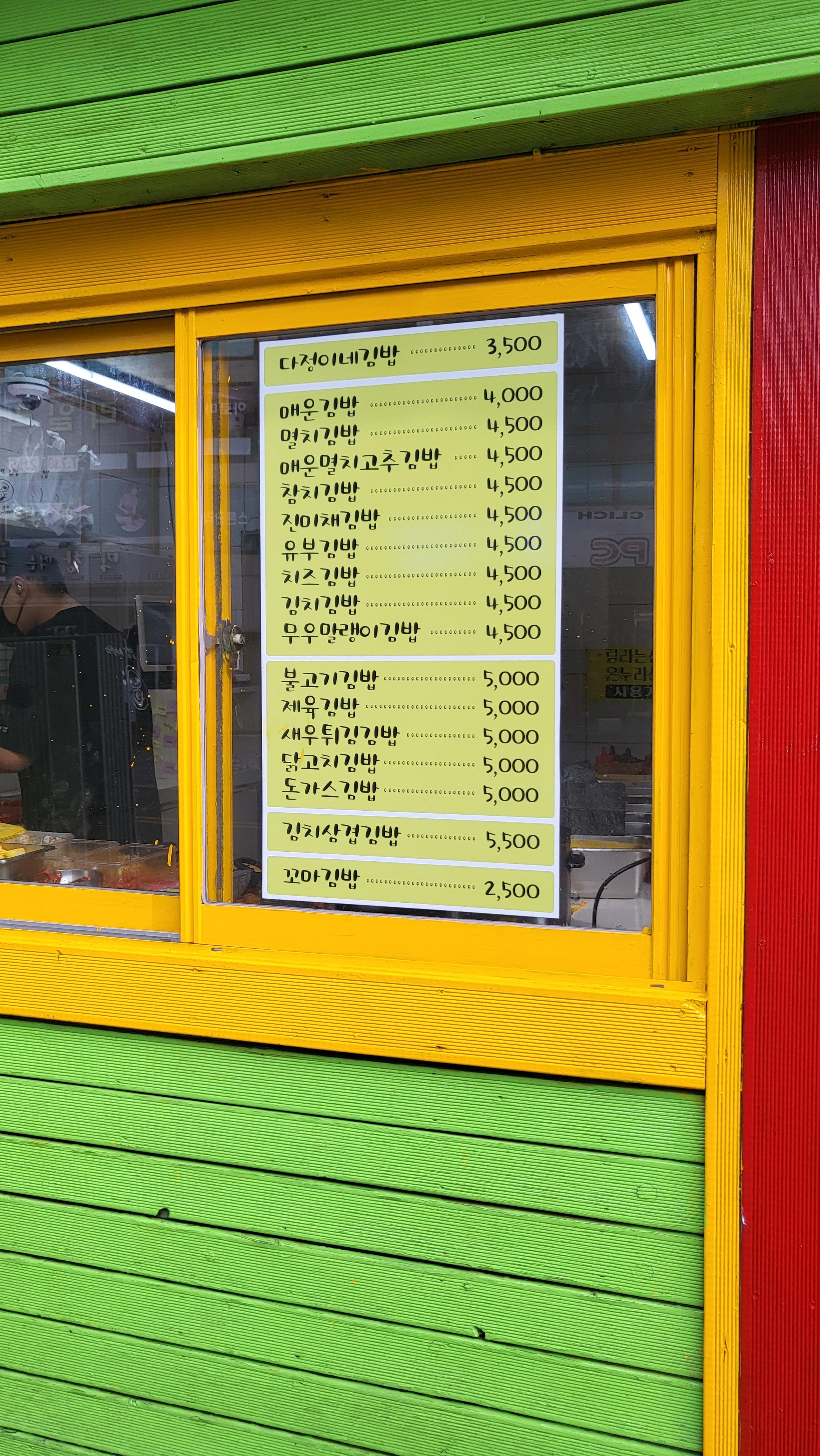 오는정김밥 / 다정이네김밥 / 다가미김밥 (뭐 누가 정한건지는 모르겠지만...)